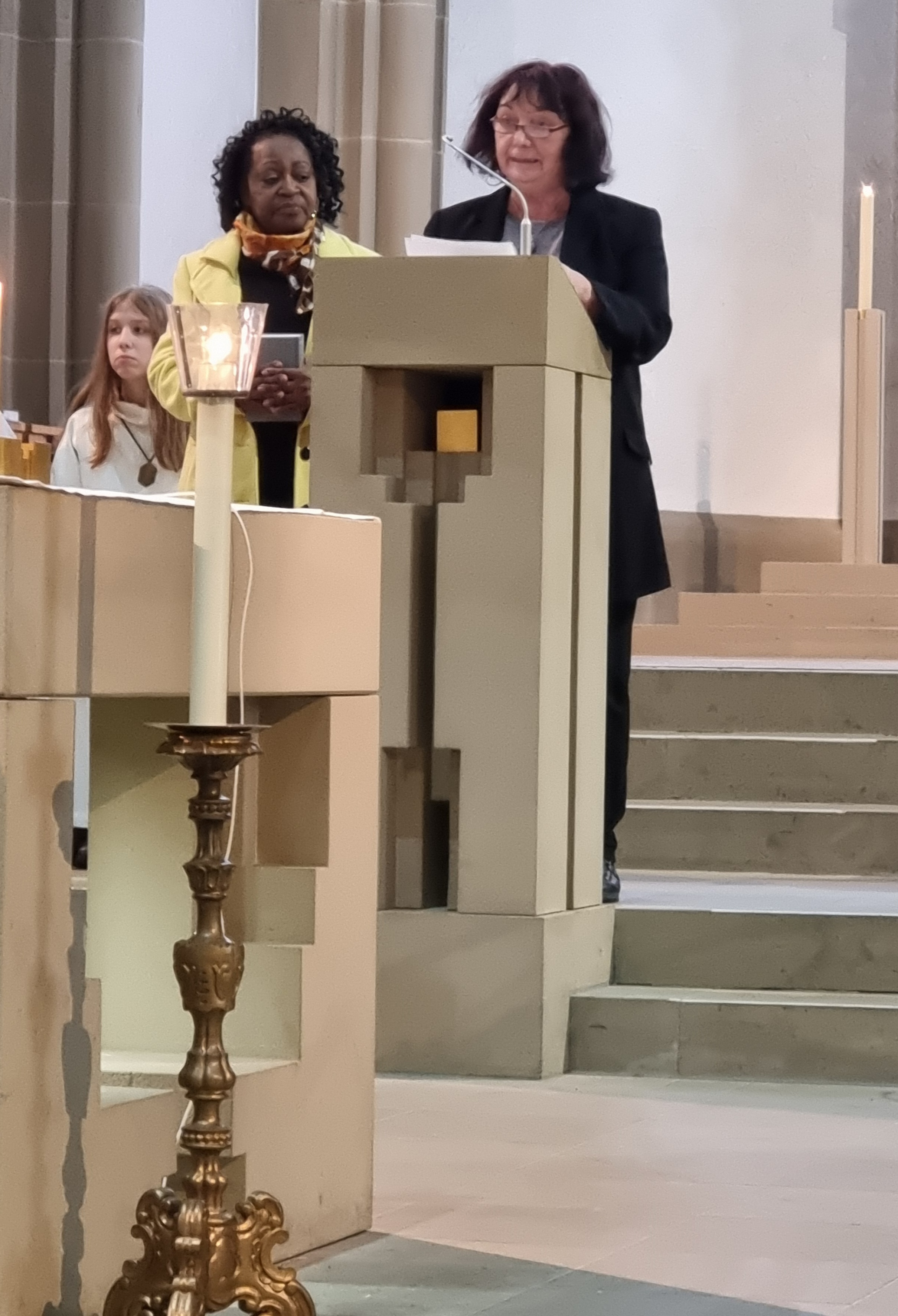 Frau Uschi Kriener hat in ihrer Aufgabe als Leiterin des Arbeitskreises Mission, Entwicklung, Frieden den Gottesdienst mitgestaltet.