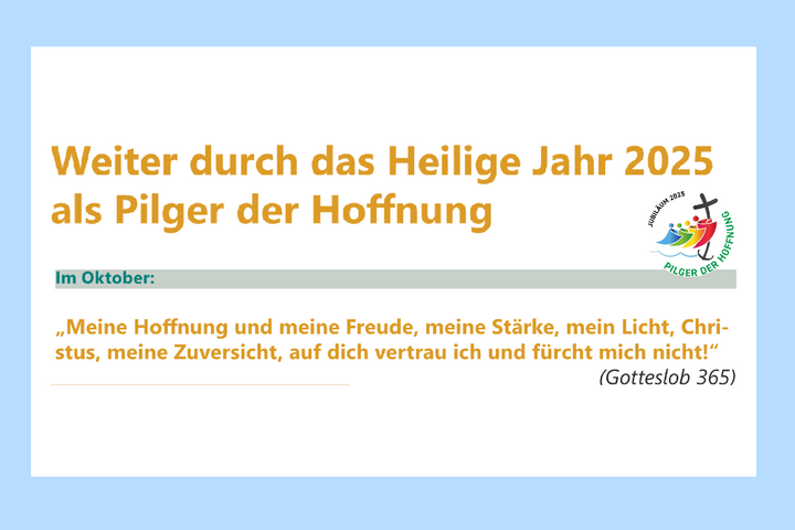 Im Oktober gehen wir weiter durch das Heilige Jahr mit der "Woche des Gebets", vom 29. September - 05. Oktober 2025. Alle Gottesdienste finden Sie in der Gottesdienstordnung.