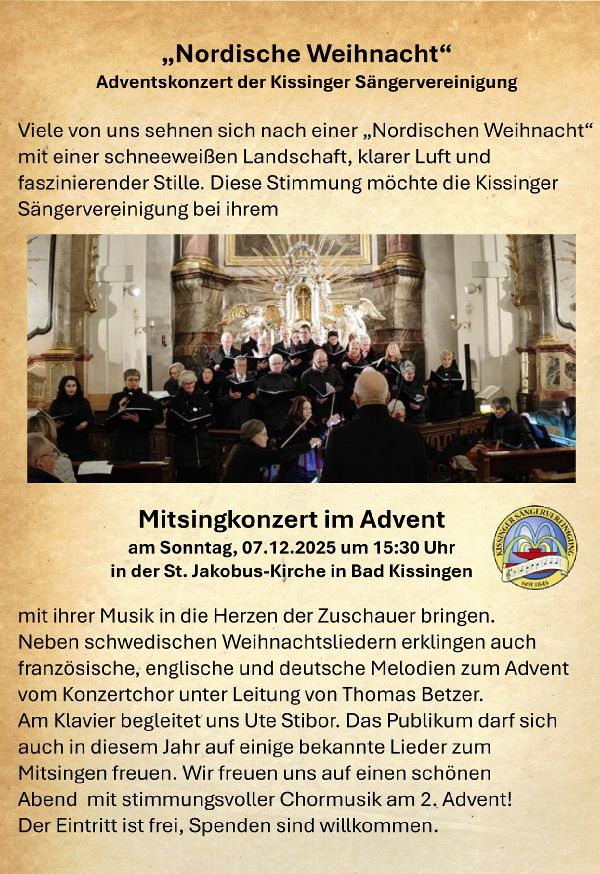 Nordische Weihnacht - Adventskonzert der Kissinger Sängervereinigung